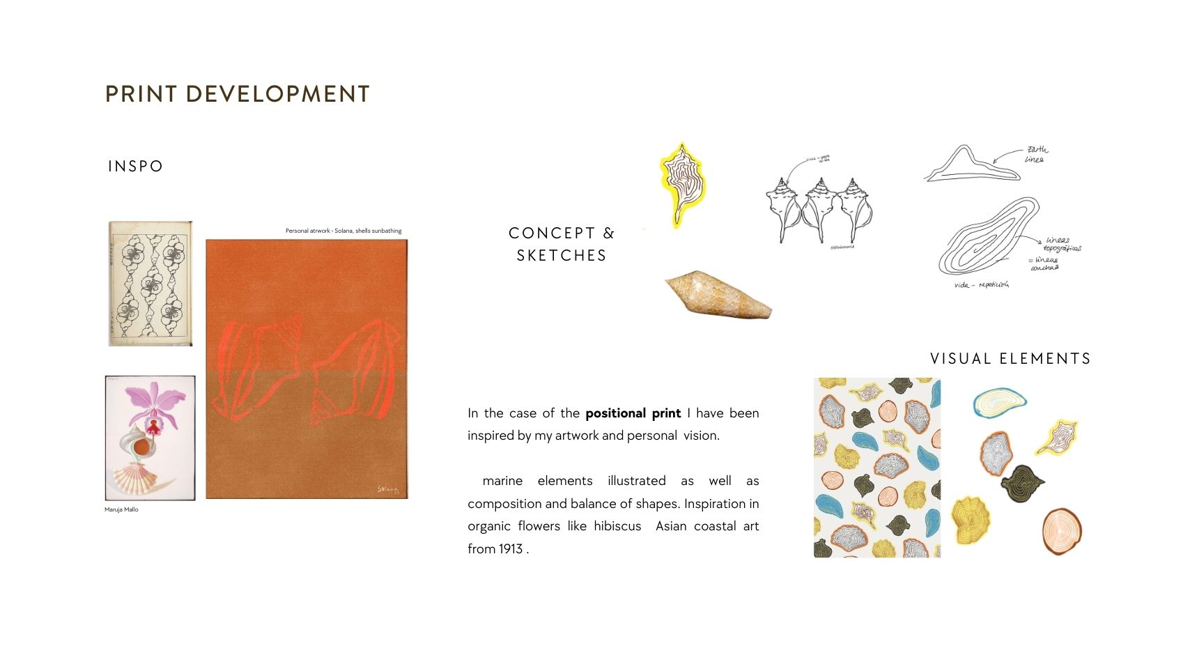 Inspired by the sinuous lines of seashells and the carefree spirit of mid-century beachwear, this collection fuses 60’s nostalgia, lines and elegant, escapist theming with positional, all-over prints to playfully blend the timelessness of tout le jouy and the uniqueness of bold designs.