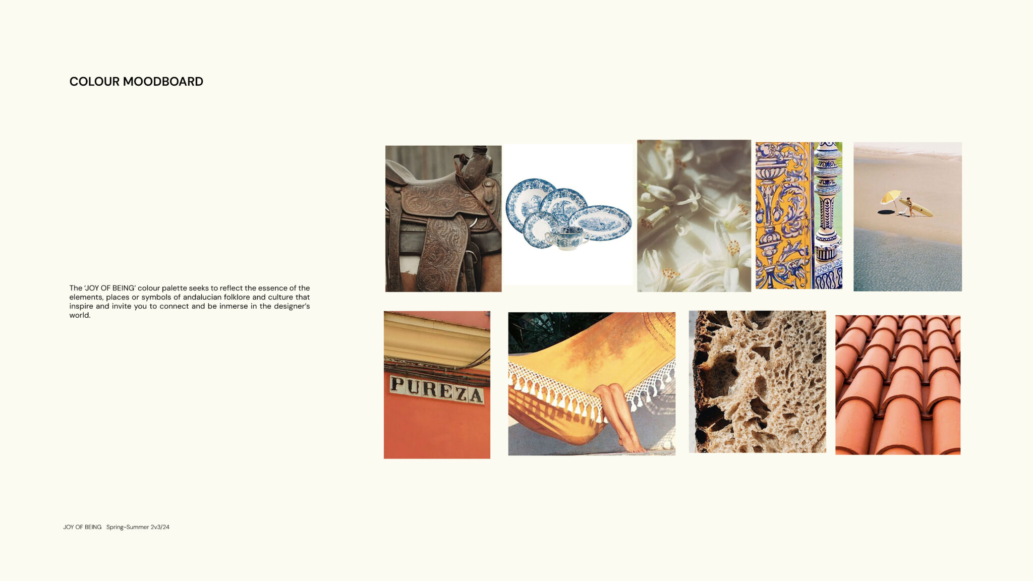 The source of inspiration for the collection is diverse and rich in nuances: it includes everyday elements steeped in nostalgia for the designer, Mediterranean and Andalusian influences, the landscapes and environments of her hometown, Seville, Andalusian customs linked to flamenco, and the folklore of her rich artistic and traditional heritage.